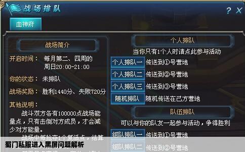 • 蜀门私服进入黑屏问题解析
